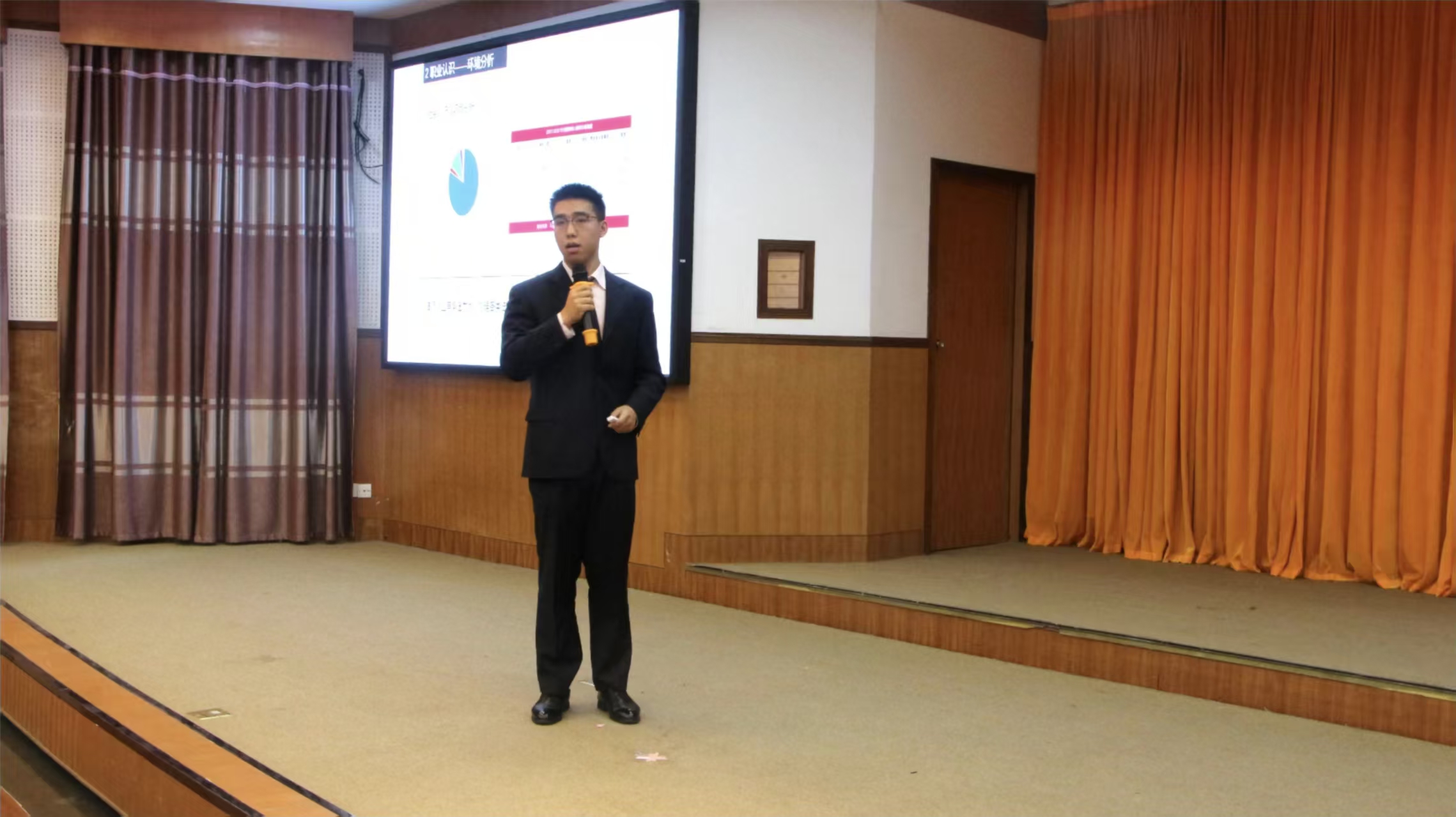 十五位选手依次从自我分析、环境分析、职业定位、职业规划、评估调整五个方面条理清晰地介绍了自己的职业规划,并在模拟就职演讲环节充分展现出对未来职业发展的美好憧憬。